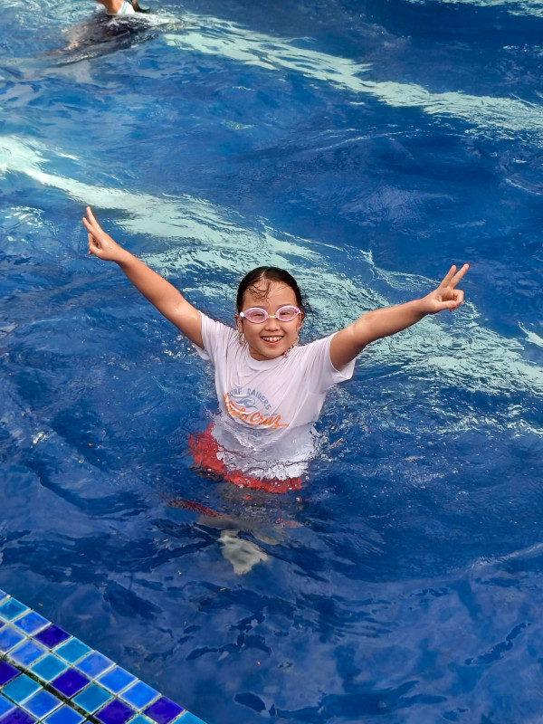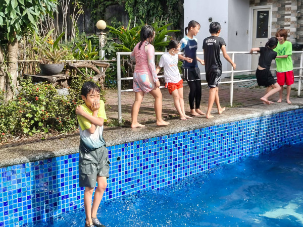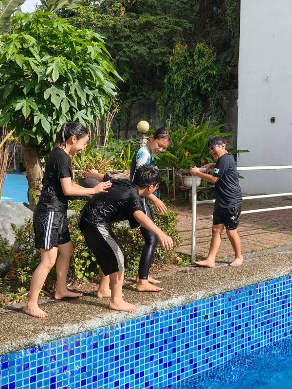 Our students enjoyed swimming time as a reward for their hard work. Balance is important — study well, then have fun!