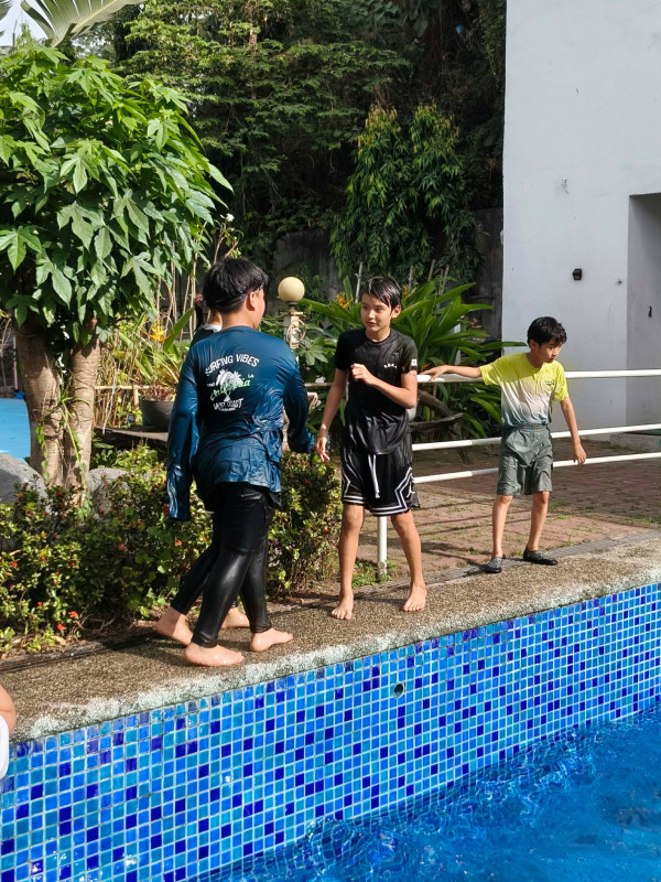 Our students enjoyed swimming time as a reward for their hard work. Balance is important — study well, then have fun!